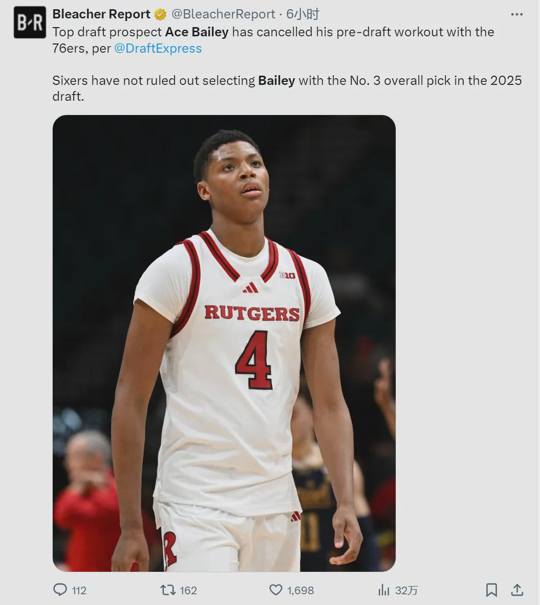 贝利和他的经纪人表示,坚信自己是2025届前三顺位,在选秀大会之前不会再跟任何球队会面。此外,贝利还提出一个要求:选中自己的球队,要提供清晰的成长路径,包括上场时间和战术地位。好家伙,真把自己当NBA巨星了!